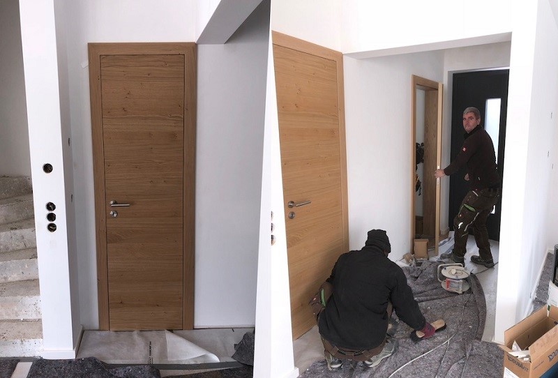 Die Wahl der Innen- und Außentüren ist einer der spannendsten Momente, wenn es um die Fertigstellung eines neuen Hauses bzw. eine Haus-Sanierung geht. Innentüren unterstreichen in großem Maße den Charakter und Stil der gesamten Innenarchitektur. Das weiß auch unser letzter Kunde, der sich in unserer Schreinerei ein tolles Türenmodell aus Eiche mit einer auffälligen Querfurnierung bestellte. Wir übernahmen dabei die Montage – hier unser Bericht: